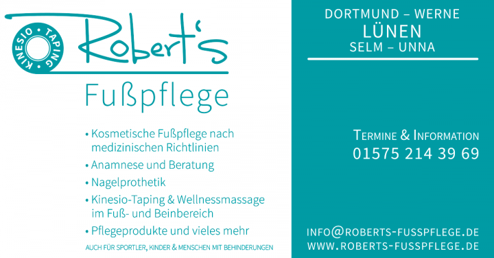 Robert's Fußpflege: Wohlbefinden nach medizinischen Richtlinien für Ihre Füße. Termine für Berufstätige auch in den Abendstunden (nach Vereinbarung). Gern auch in Zusammenarbeit mit Ihren Ärzten, Therapeuten und Pflegediensten.