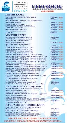 Zatvoren bazen je namenjen kako rekreaciji naših sugradjana, tako i treninzima sportskih klubova. Na bazenu Cfk Vračar održavaju se i takmičenja u plivanju, sinhronom plivanju i vaterpolu mladjih kategorija. Realizuju se programi: hidrobik, škola plivanja „Delfin“, usavršavanje tehnika plivanja, kao...