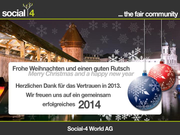 Ich wünsche dem gesamten Team von Social-4 besinnliche Weihnachtsfeiertage und wieder viele gute Ideen für ein spannendes interessantes Jahr 2014, auf das ich mich auch mit Euch freue.