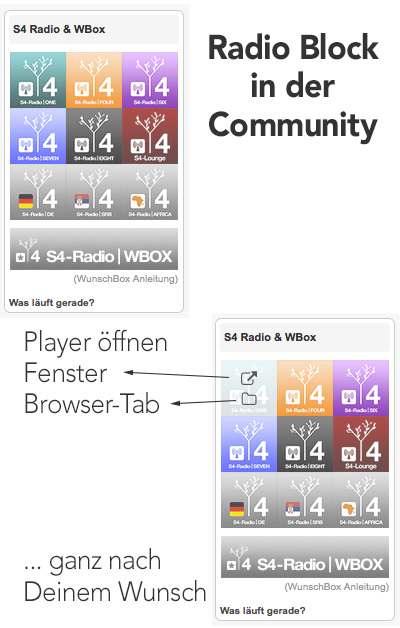 Zunächst: Der Block zur Auswahl des Radio Players wurde aktualisert. Nun kann man zu jedem Sender und ganz nach Wunsch den Player öffnen. In einerm externen Fenster oder in voller Größe in e...