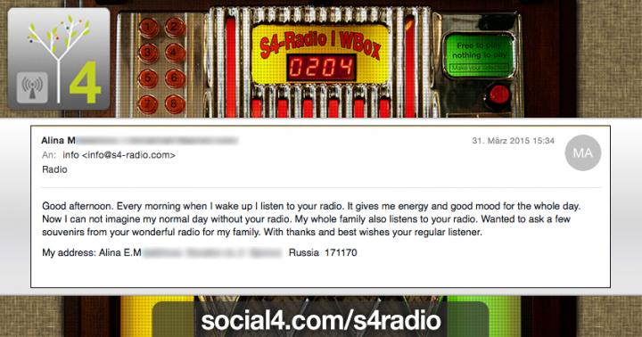 Die Mail von einem Radio-Fan aus Russland hat uns heute sehr erfreut!
