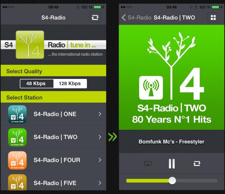 The update for the iOS app "S4-Radio" has passed verification and is online now. Enjoy both new radio stations inside the app:
