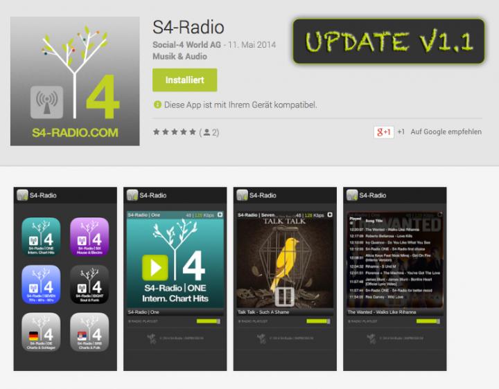 Jetzt ganz frisch bei Google Play, die neue Version der Android App von S4-Radio.